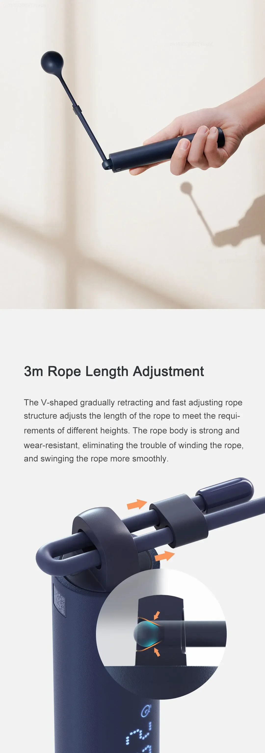 A 3-meter rope ensures the perfect fit for any user. -